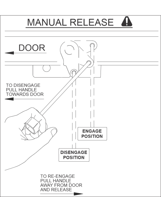 CAUTION: When the opener is manually disengaged, the door is no longer locked. To lock the door manually, re-engage the opener after the door is closed.